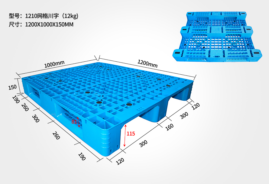 | 1210網格川字托盤 | 1200*1000*150/165 | 10/11/11.5/12/13.5/14.5 | 1.5T | 5T | 8/10 |